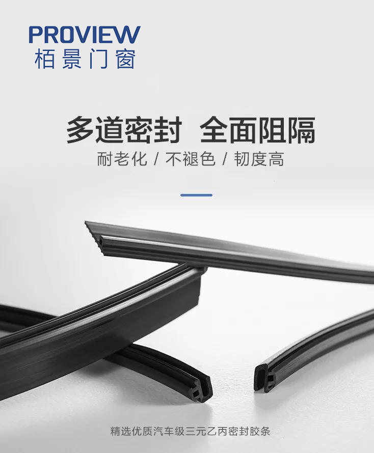 栢景系統(tǒng)門窗精選優(yōu)質(zhì)汽車級EPDM發(fā)泡膠條進(jìn)行密封,膠條是壓入式的;連接型材的隔熱條在同一條直線上,形成了一個(gè)完成的隔熱層(等溫線層),有效達(dá)到冬季保溫的效果。